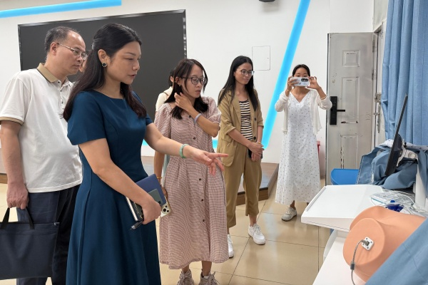 调研组继续前往广东岭南职业学院开展第二站调研。岭南职院护理与健康学院党总支书记曾银珠、院长黄珊珊、副院长王思平及实验室主任林纯等热情接待并开展深入交流。黄珊珊院长首先介绍了学校整体办学历程与发展战略,详细介绍了护理与健康学院的办学规模、特色专业和教学成果。曾银珠书记重点阐释了护理学院在“红色传承”与“书院制”协同育人方面的创新实践,突出其对学生思想政治素养与综合能力的系统塑造,展现出独特的人才培养生态。学院在产教融合与社会服务方面也积累了丰富经验,与多家医院康复科室、康复中心及健康管理机构建立了稳固的合作关系。