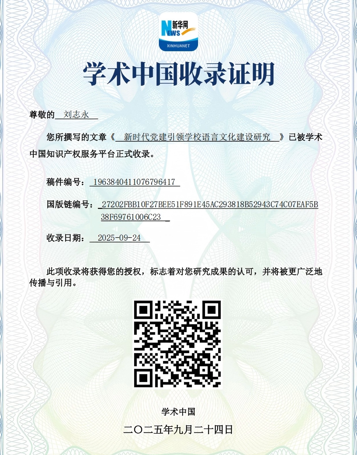 与此同时,该研究成果还被“学术中国”收录,进一步彰显了课题的学术价值和实践意义。这不仅是对课题组成员辛勤付出的肯定,也是对体育健康学院党建研究工作的高度认可。