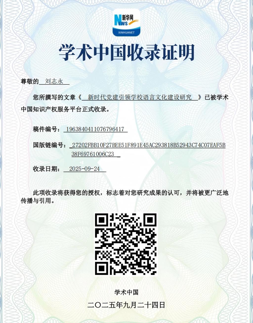 经过数月的精心筹备与努力,2025年6月,好消息传来,《新时代党建引领学校语言文化建设研究》成功获得课题立项,项目编号为 2025JGYB049。这一立项为学院党建研究工作注入了强大动力,也为后续的深入研究奠定了坚实基础。