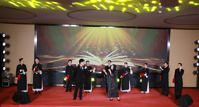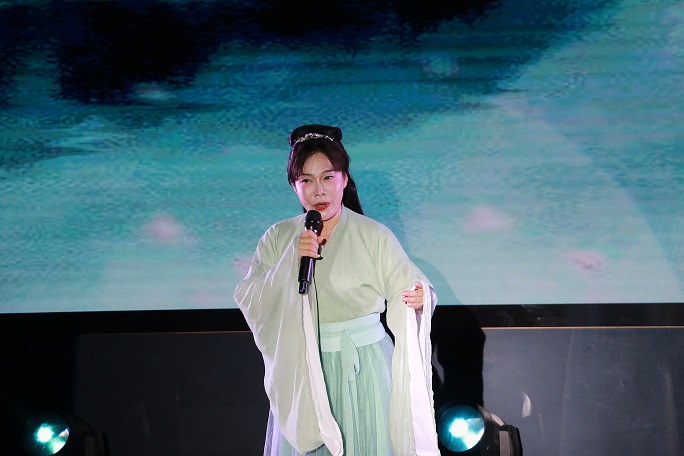 巾帼绽芳华篇章开场舞《“樱”为有你,绽彩芳华》,展现女职工的绚丽色彩和青春活力;合唱《汉韵流光·巾帼风华》展现古韵与当代和声共振;古风形体健身舞《花间舞·踏香行》创新融合传统身韵与健康理念;朗诵《南粤匠星》身着汉服,将女教师扎根职教的动人故事娓娓道来;朱晓丹老师独唱《越人歌》表达了越人对美好情感的向往与追求。