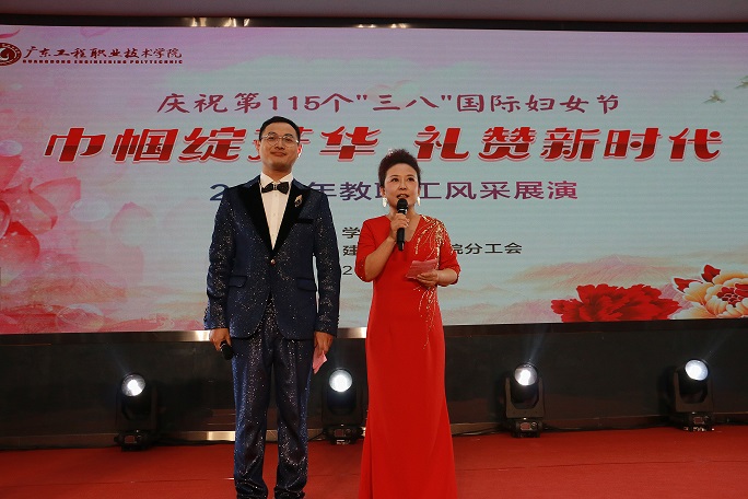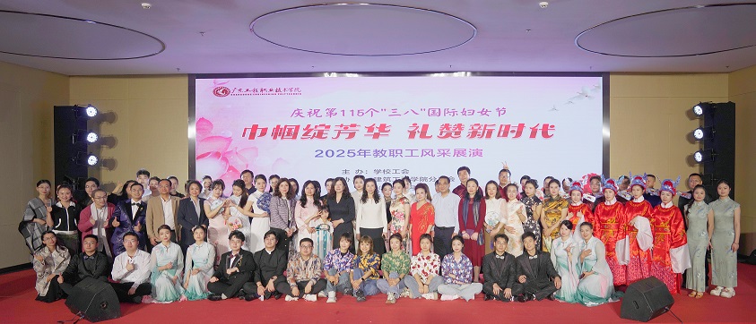 霓裳羽衣映春色,铿锵玫瑰展芳华。3月12日晚上,一场主题为“巾帼绽芳华 礼赞新时代”教职工的风采展演在清远校区报告厅举办。学校党委副书记、校长李丽和党委副书记、工会主席方燕,在清远校区报告厅与二百余名教职工代表共赴流光溢彩的春日盛典。舞台光影间演绎知识女性的多维魅力——春风化雨的柔美与时代担当的锋芒在此交相辉映。