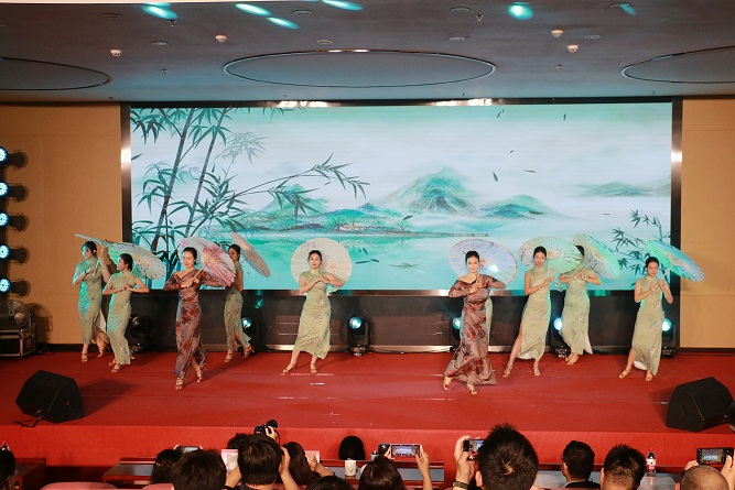 风采展演共分为三个篇章,分别是巾帼绽芳华、筑梦启新程、礼赞新时代。各级工会选送的15个匠心编排的节目以服饰为纽带,通过不同的艺术表现巾帼风采。活动由艺术设计学院副书记焦英和宣传部副部长查宇驰联袂主持。
