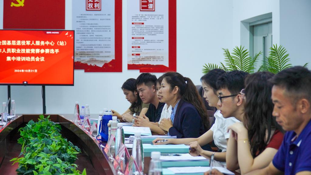 10月21日下午,在学校职教城校区酒店管理学院206会议室举行了集训动员会。广东省退役军人事务厅思想政治工作与权益维护处处长、一级调研员黄瑞轸,思想政治工作与权益维护处副处长朱涛,服务中心副主任孔照;清远市退役军人事务局党组成员、副局长陈杜永,服务中心负责人;广东工程职业技术学院党委委员、副校长张小广,酒店管理学院党政领导班子,以及来自广州、深圳、清远的8名参赛选手参与动员会。动员会由广东省退役军人事务厅思想政治工作与权益维护处二级调研员方治国主持。