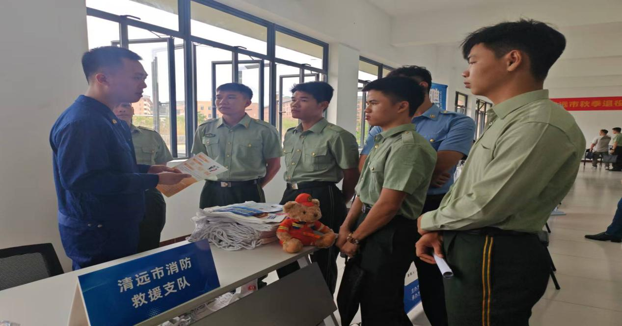 11月16日上午,学校为自主就业退役士兵培训班学员开展了专场招聘会,清远市消防救援支队、清远长隆投资有限公司、碧桂园生活服务集团有限公司、中国人寿清远分公司、清远旅云飞低空经济技术发展有限公司等10家清远企、事业单位参加招聘会,提供了50余个就业岗位,各进场单位现场收取意向报名表累计60余份,旨在促进自主就业退役士兵快速就业。