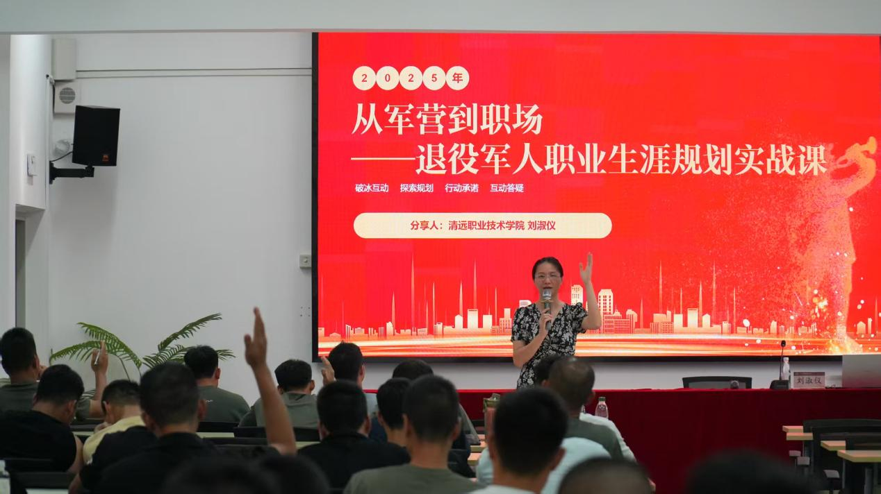 本次培训课程安排紧密,针对性强,涵盖心理疏导、技能提升和政策解读三大模块。师资团队由来自清远市委党校、清远市退役军人局、职教城兄弟院校的15名教授、博士和优秀人才组成,为学员们传授最新知识和技能。心理疏导专题教学重点关注退役士兵角色转换与心理调适,帮助学员缓解从军营到地方的适应压力。技能专题教学则包括短视频制作、办公软件使用、职场沟通能力等实用内容,紧贴当前就业市场需求。政策专题教学方面,课程设置了国防与保密教育、乡村振兴创业成功案例、突发事件与信访工作处理等内容,还特别融入了党的二十届三中全会精神解读、粤港澳大湾区协同发展以及人工智能素养等课程。 培训期间课堂氛围良好,学员热情高涨。“培训内容实用性强,对今后的就业、创业具有重要指导意义。”一位参训学员表示。