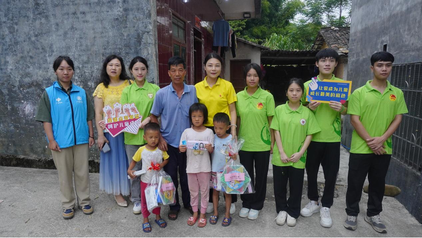 第三支队伍为院级队伍,共5名同学,前往英德市石灰铺镇开展关爱留守儿童活动。队员们在石灰铺镇工会副主席李宝琼陪同下走访了10户村民。由于地区经济发展不平衡,留守儿童问题日益严重。孩子们的爷爷奶奶大多数没有受过良好的教育,在学习上不能及时给予他们的帮助,爷爷奶奶年龄日益增大,精力有限,也无法给他们足够的关心。其中罗开华老人还身患残疾,由于他的子女都外出打工,家里只有他一人照看三名孙辈。鉴于这些情况,志愿者们特地给孩子们带来一些文具及运动器材,陪他们下跳棋,和他们聊天进行心理疏导,并尽可能帮助孩子们解决一些学习上的难题并鼓励孩子们多读书读好书,用知识充实自己,自立自强。在本次“三下乡”社会实践活动中,志愿者们带着一颗炙热的心温暖着石灰铺镇的留守儿童,助力社会关爱儿童工作,展现了一代青年的风采和责任。