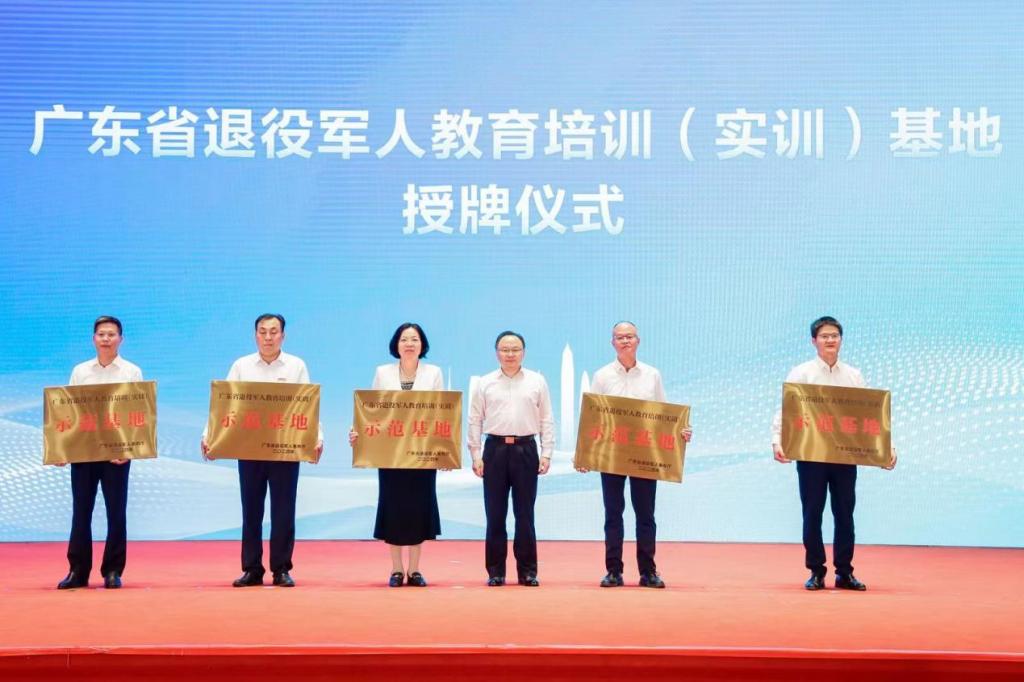 为深入学习贯彻习近平总书记关于退役军人工作重要论述,全面贯彻落实党中央、国务院以及省委、省政府部署要求,促进广东省退役军人高质量充分就业,广东省退役军人事务厅于10月29日上午9点在广州市白云国际会议中心举办全省退役军人就业创业工作会议暨第二批广东省退役军人教育培训(实训)示范基地授牌仪式。学校党委委员、副校长吴志敏出席会议。 授牌仪式现场,广东省退役军人事务厅党组书记、厅长王创为我校颁发广东省退役军人教育培训(实训)示范基地牌匾。