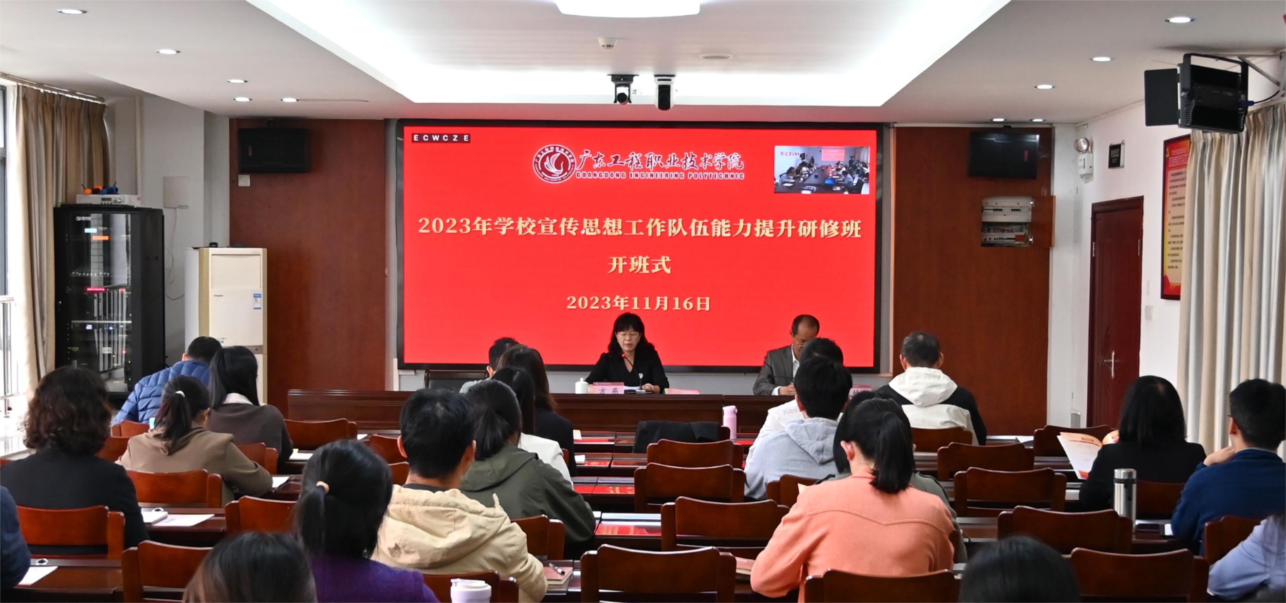 11月16日下午,学校举办宣传思想工作队伍能力提升研修班开班式。学校党委方燕副书记出席并讲话。各二级学院党委、各党总支书记、宣传委员,各党支部宣传委员,全校网评员参加开班式。开班式由宣传部(武装部)副部长林华开主持。