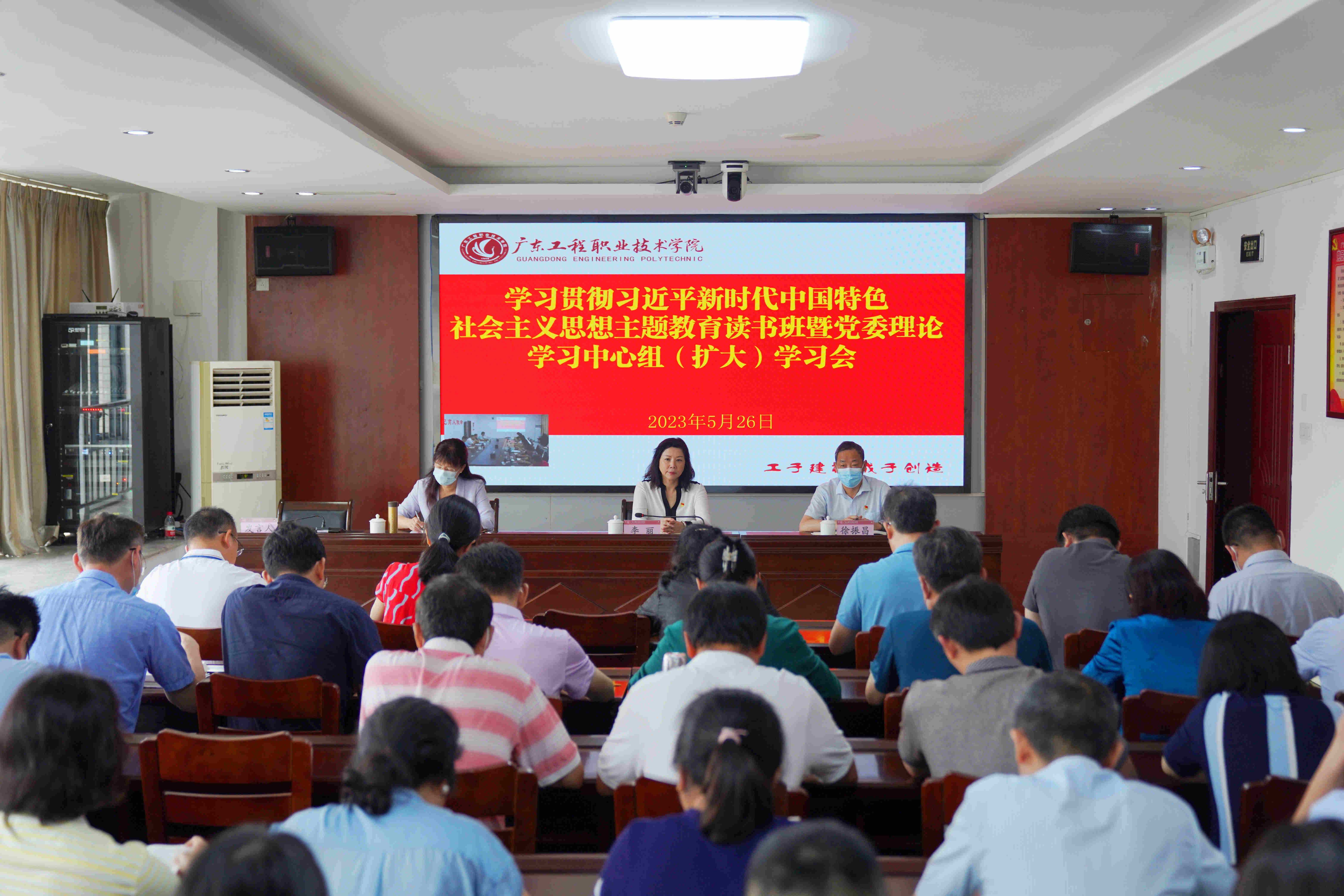 5月26日,学校举办主题教育读书班暨党委理论学习中心组(扩大)学习会,专题学习党的二十大关于人才队伍建设的重要论断,加强师德师风建设,打造高水平人才队伍。会议由学校党委书记吴琦琳主持,学校党委委员、副校长张小广作了领学发言,学生工作部(招生与就业指导中心)部长黄馥丽、机电(电梯)工程学院院长曹立生、财经学院党委书记吴丽清作学习发言。学校领导、中层干部参加会议,会议采用视频连线方式在广州校区和省职教城校区同步举行。