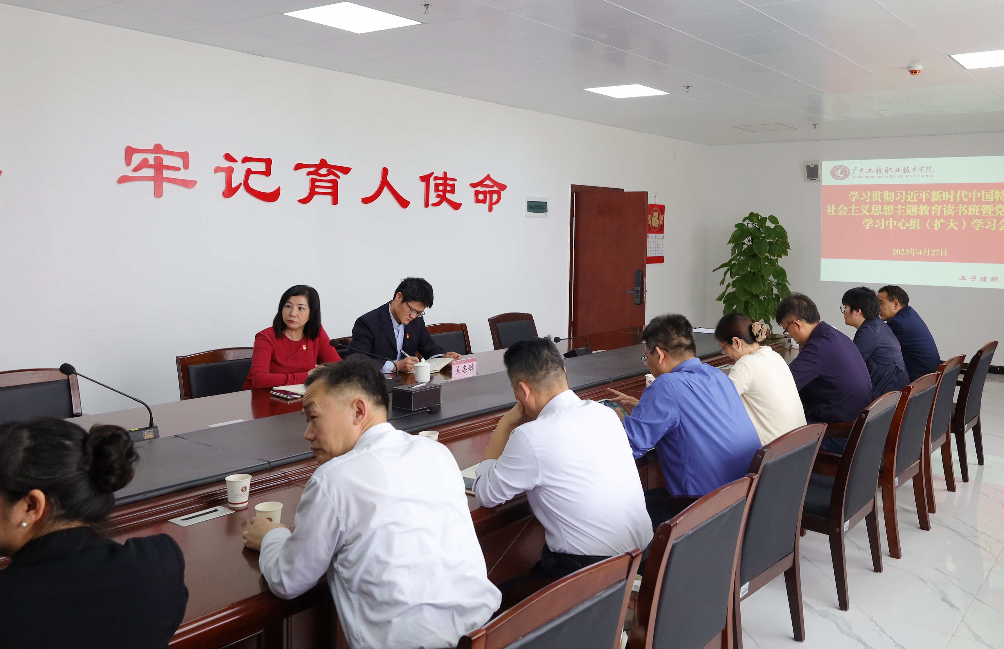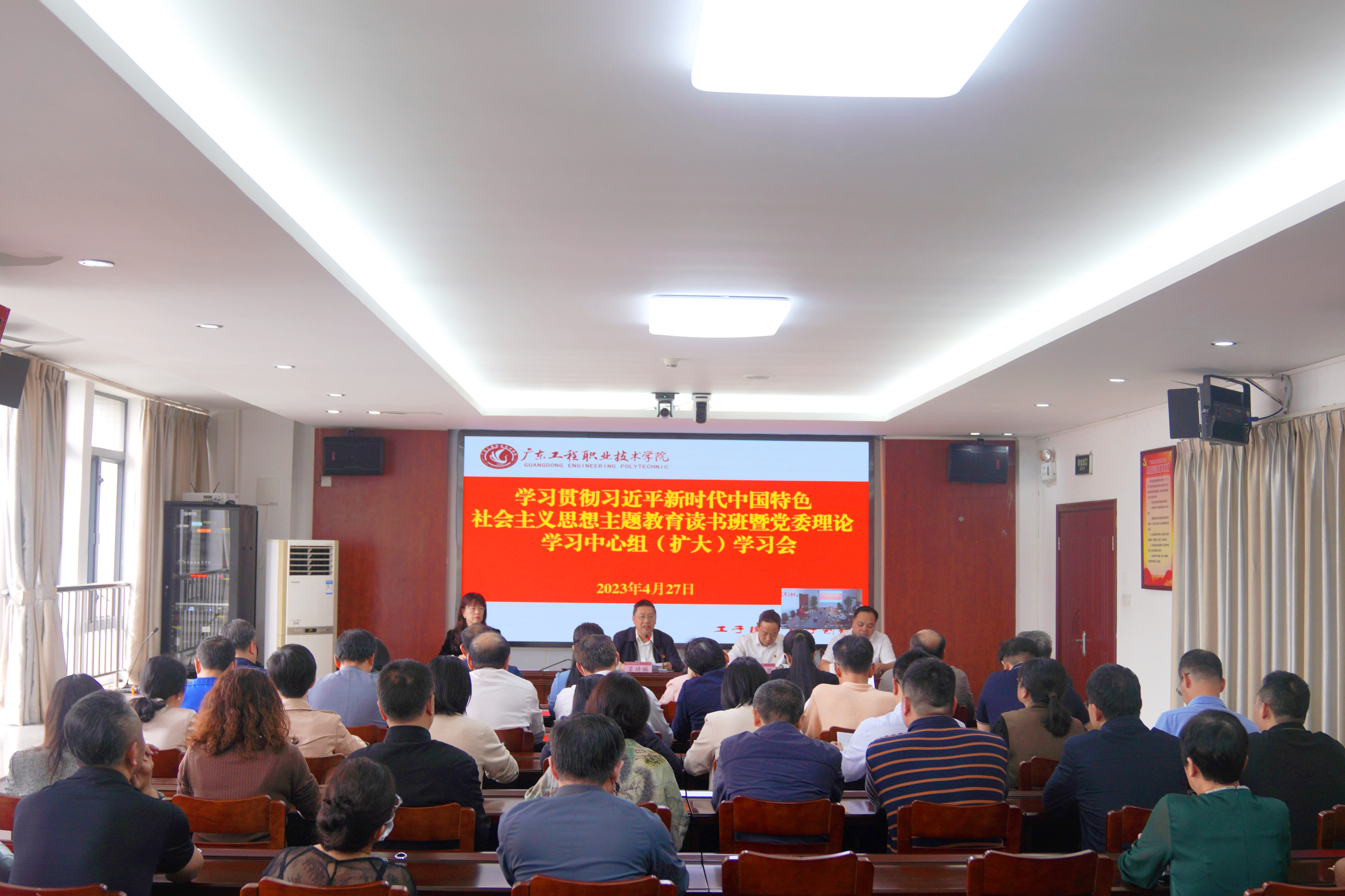 4月27日下午,我校举行学习贯彻习近平新时代中国特色社会主义思想主题教育读书班开班式暨党委理论学习中心组(扩大)学习会。学校党委书记吴琦琳作开班动员讲话和首场辅导报告。全体校领导、中层干部参加了会议。会议采用视频连线方式在广州校区和省职教城校区同步举行。