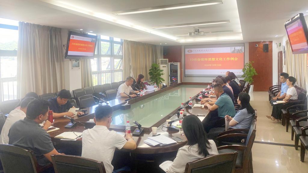 学校相关部门、各二级学院对近期政治安全意识形态安全工作研判分析。宣传部(武装部)副部长林华开通报了9月份以来党委理论学习中心组学习、内宣与外宣、政治安全与意识形态等宣传思想工作情况,结合实际剖析问题原因,强调下阶段要加强理论武装工作,注重工作实效,凝练工作特色,构建宣传矩阵。强化风险意识,密切监控意识形态风险点,强化学生思想引领。