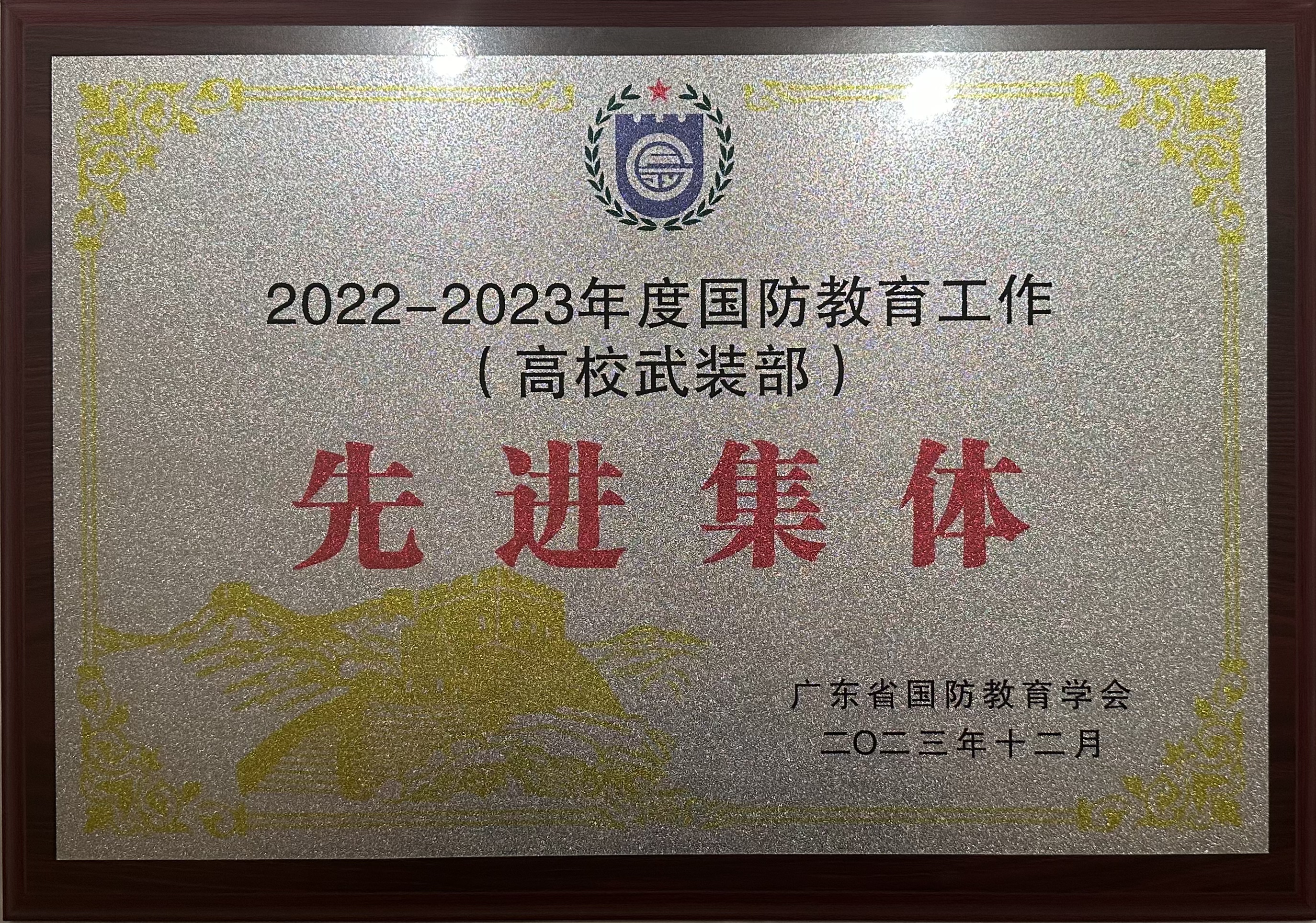 近日,广东省国防教育学会主办的2023年度工作会议在河源召开。会议对2023年度广东省国防教育工作中的先进单位和国防教育工作典型示范案例表彰。我校荣获“2023年度国防教育工作典型示范案例二等奖”,学校武装部被授予“广东省国防教育工作先进集体”。