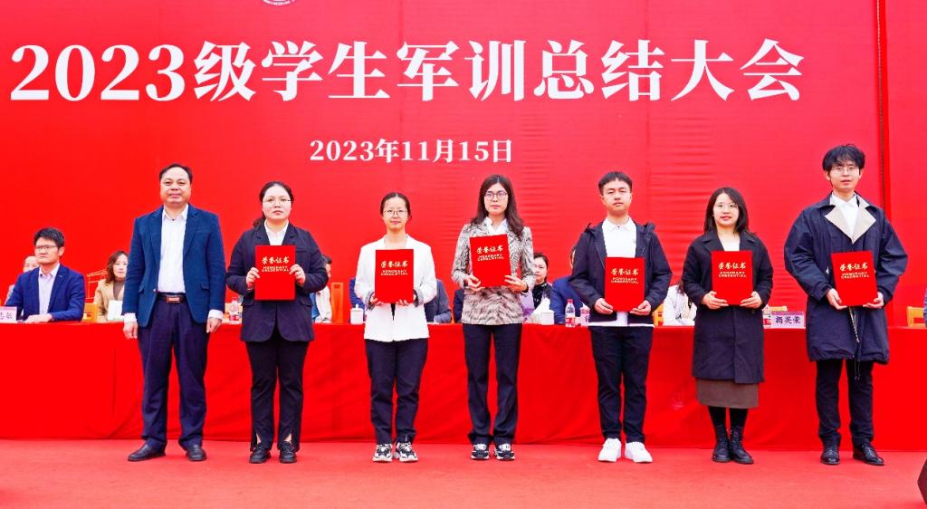 党委副书记徐振昌宣读了《关于表彰2023级学生军训优秀集体和个人的决定》。学校领导为军训获奖集体和个人颁奖。