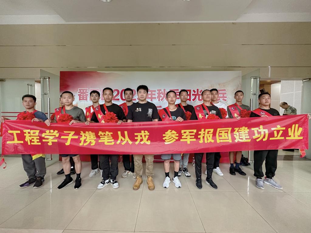 9月8日上午,学校武装部老师和12名学生到番禺国防教育训练基地参加南沙区人民政府征兵办举办的定兵大会,全部学生顺利应征入伍。定兵仪式之后,我校在现场举办了送兵仪式。