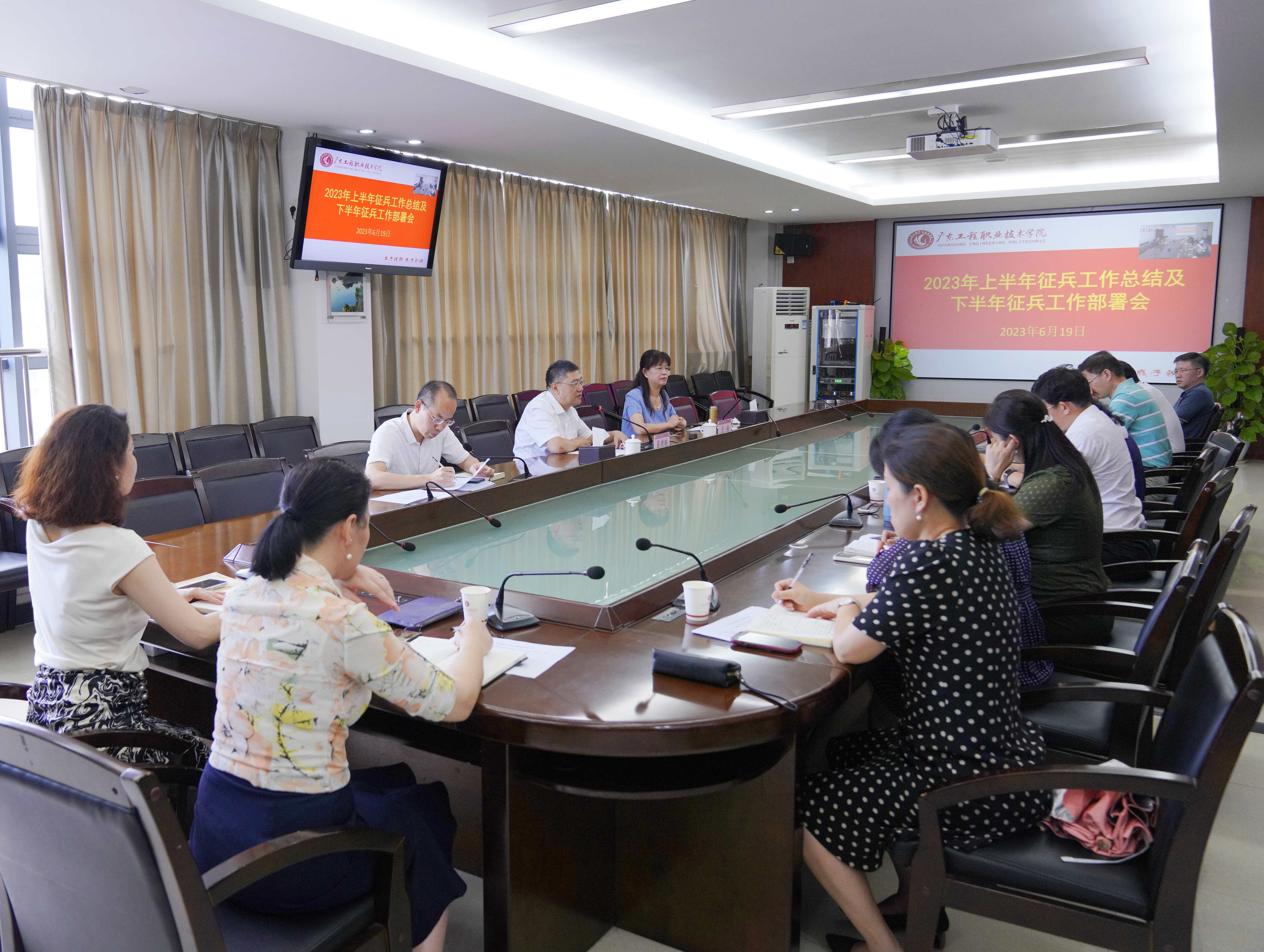 6月19日上午,学校召开2023年上半年征兵工作总结及下半年征兵工作部署会议。学校党委书记吴琦琳、副书记方燕出席了会议。学校征兵工作领导小组成员单位负责人,二级学院党委书记、副书记及负责征兵工作的辅导员参加了会议。会议由宣传部(武装部)副部长林华开主持,会议采用视频连线方式在广州校区和省职教城校区同步举行。