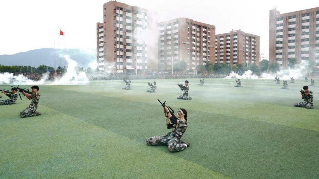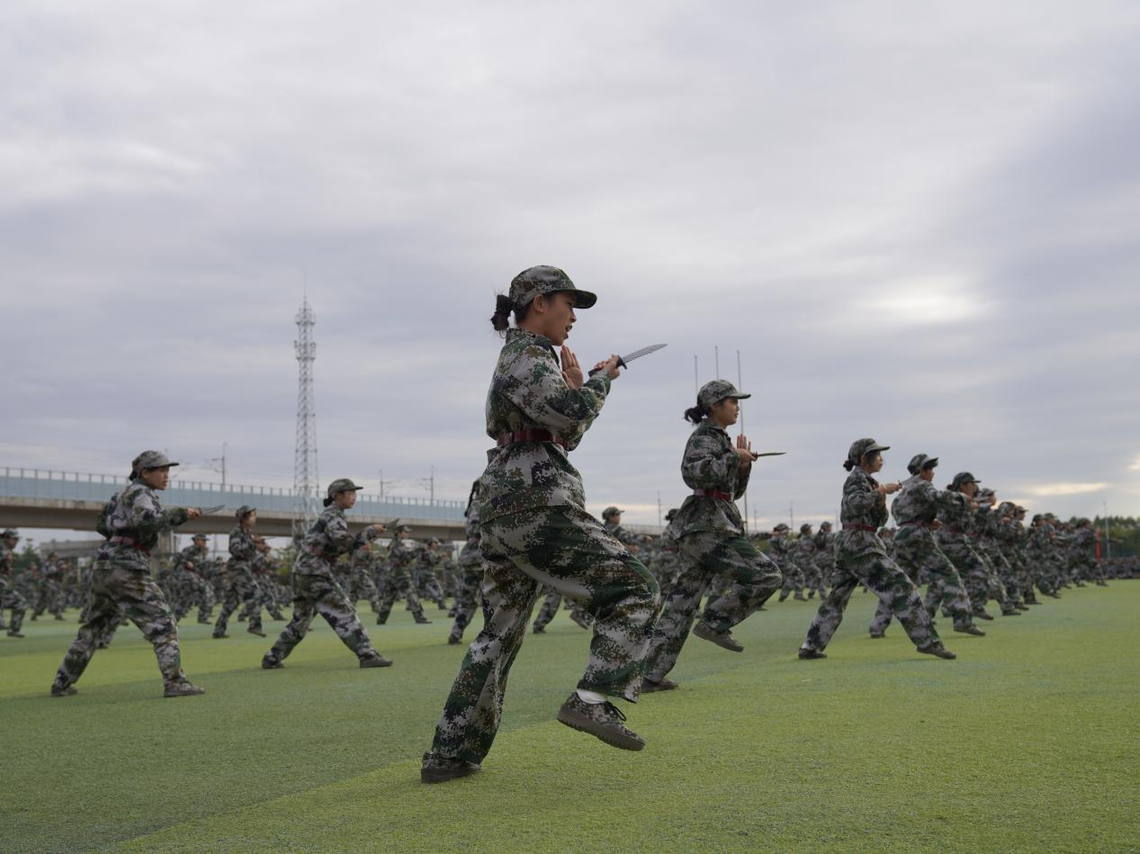 青春戎装,不负韶华。学校党委叶忠明书记指示军训科目会操按计划进行。八千多名参训新生以昂扬的精神面貌全身心投入到各项科目的展示中。绿茵场上分列式方阵步履铿锵,雄姿英发,以挺拔的身姿迎接检阅,尽情展现出新时代大学生的青春风采。各方阵的操练表演精彩纷呈、气势如虹。匕首操利刃出鞘、刀锋起扬,刺杀操杀声阵阵,吼声震天,军体拳、捕俘拳、擒敌拳步步有力、拳拳生风。在弥漫的硝烟中,战术方阵跪卧滑行,匍匐前进,解救“人质”,上演精彩的战术演练。一招一式都凝聚着14天的刻苦训练成果,举手投足都彰显着严明作风与集体荣誉。