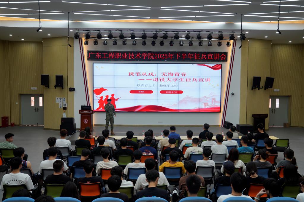 为积极响应国家征兵号召,圆满完成2025年征兵工作任务,根据省征兵办、省教育厅和南沙区“国防教育暨征兵宣讲进百校”活动安排,我校于12日、13日下午,分别在清远校区和广州校区举办两场征兵宣讲会。