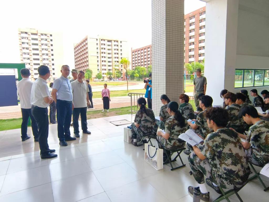 叶忠明书记与张永强副校长来到清远校区训练场,走进各训练营队,观看各营的训练情况,深入了解军训期间的学生训练计划、训练进度和后勤保障工作,向辛勤付出的军训教官表示衷心的感谢,向刻苦参训的新生表示肯定与赞扬,向保障军训顺利开展的师生及工作人员表示亲切慰问。叶忠明书记表示,军训是大学新生开展国防教育的重要课程,希望同学们在训练中团结一致,厚植爱国情怀,增强国防观念,争做一名有理想、敢担当、能吃苦、肯奋斗的时代新人。