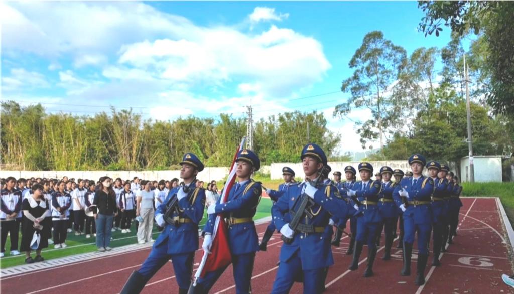 为厚植爱国主义教育情怀,搭建校地协同育人桥梁,10月20日上午,我校国旗护卫队全体队员走进清远市新桥学校,开展“大手拉小手”爱国主义教育主题活动。活动通过庄严的升旗仪式、生动的红色故事分享与沉浸式军事装备体验,为学生们带来了一堂别开生面的“行走的思政课”。
