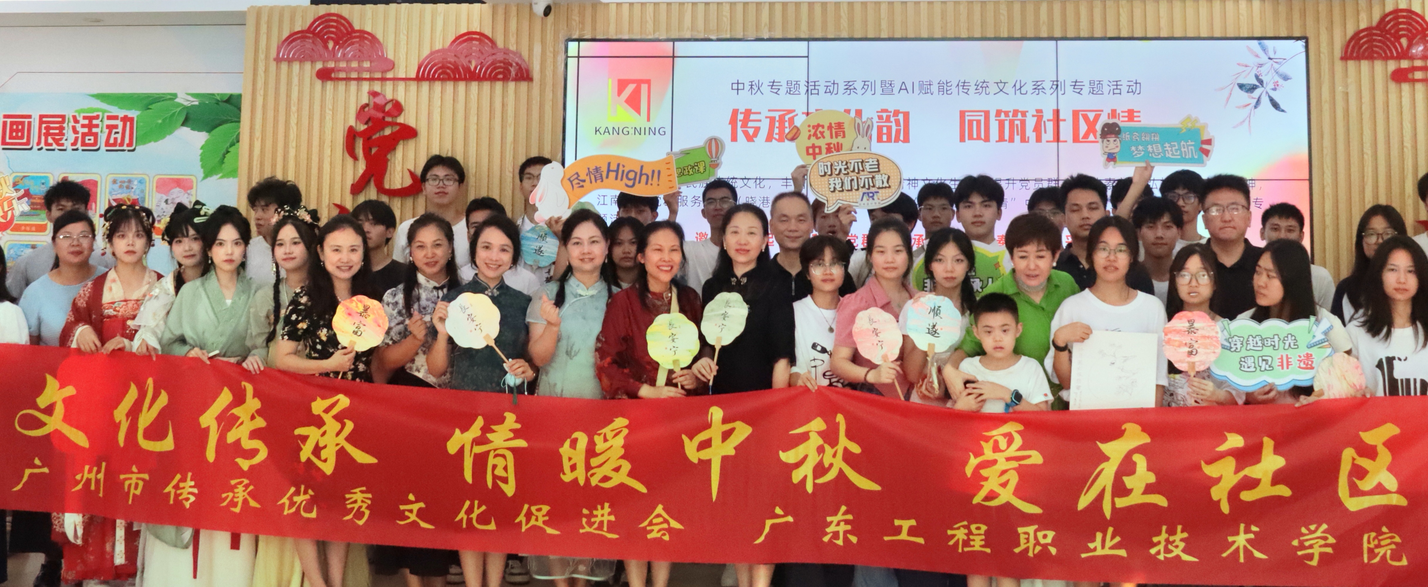 9月15日,广东工程职业技术学院学生工作部(招生与就业指导中心)携手优秀校友余雄丽,赴海珠区江南中街党群服务中心(晓港公园)共同开展“美育浸润”系列活动之“传承文化韵·同筑社区情”中秋专题及AI赋能传统文化体验活动,将传统节日的温馨氛围与前沿科技的璀璨光芒巧妙融合,为社区居民带来了一场视觉与心灵的双重盛宴。学校学生工作部(招生与就业指导中心)部长黄馥丽、信息工程学院党委书记桂爱民带队,近50名师生参与活动。