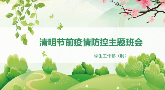 为统一思想,提高全体学生的疫情防控意识,学生工作部制作了“清明节前疫情防控主题班会”内容,组织各学院 召开放假前主题班会课。