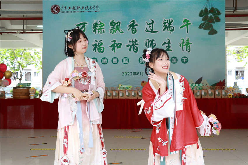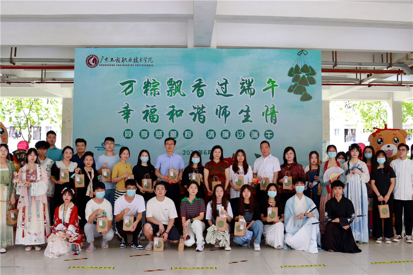 “广州、省职教城两校区今年同步开展端午节文化活动,让学生沉浸其中,在活动中了解中华优秀传统文化、爱上中国传统文化,发扬爱国主义精神,传承中华美德。”校长李丽说,“今后学校将继续以传统节日为契机送温暖办实事,凝心聚力,助推学校建设发展,营造和谐奋进干事创业发展生态。”