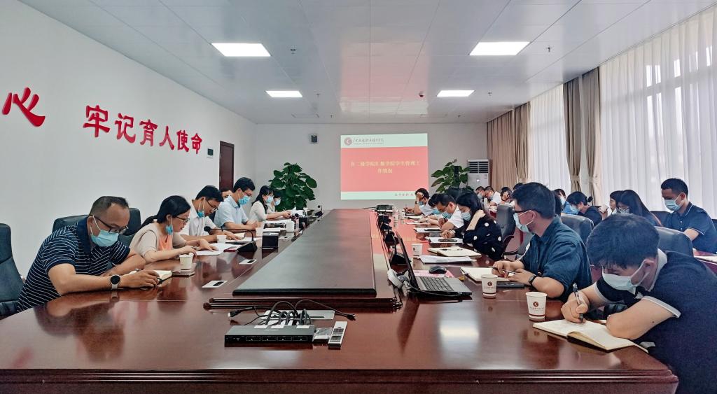 6月8日下午,我校在省职教城校区办公楼411室召开学生管理工作座谈会。学校副校长张小广出席会议,省职教城校区学生工作部全体成员,各二级学院党总支副书记及全体辅导员参加了会议。会议由学生工作部副部长查宇驰主持。