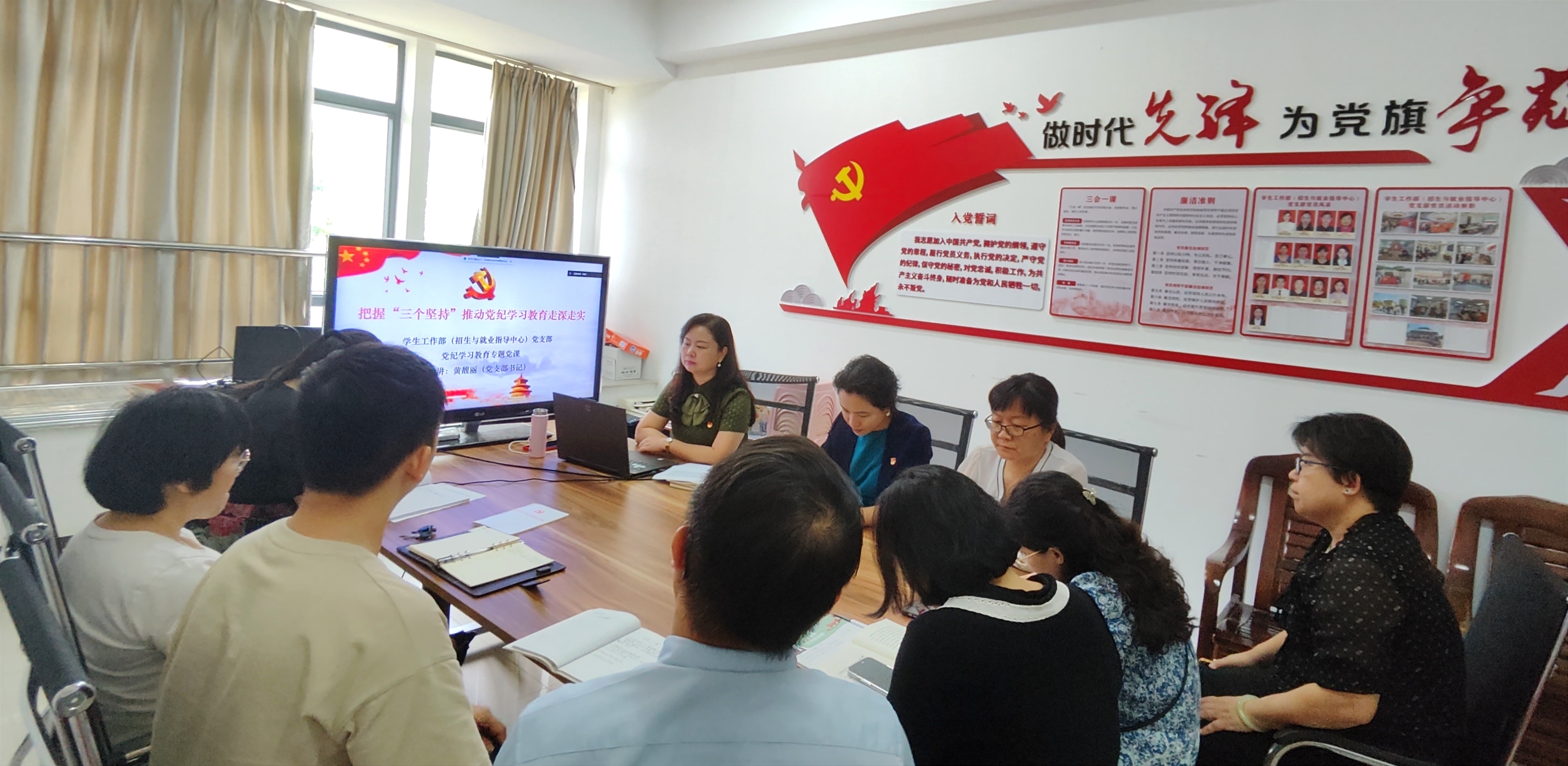 根据学校关于开展党纪学习教育纪律党课工作的部署,为深入开展学习新修订的《中国共产党纪律处分条例》,5月15日上午,学生工作部(招生与就业指导中心)党支部书记黄馥丽主讲党纪学习教育纪律专题党课,学生工作部(招生与就业指导中心)全体党员在两校区会议室连线参会。