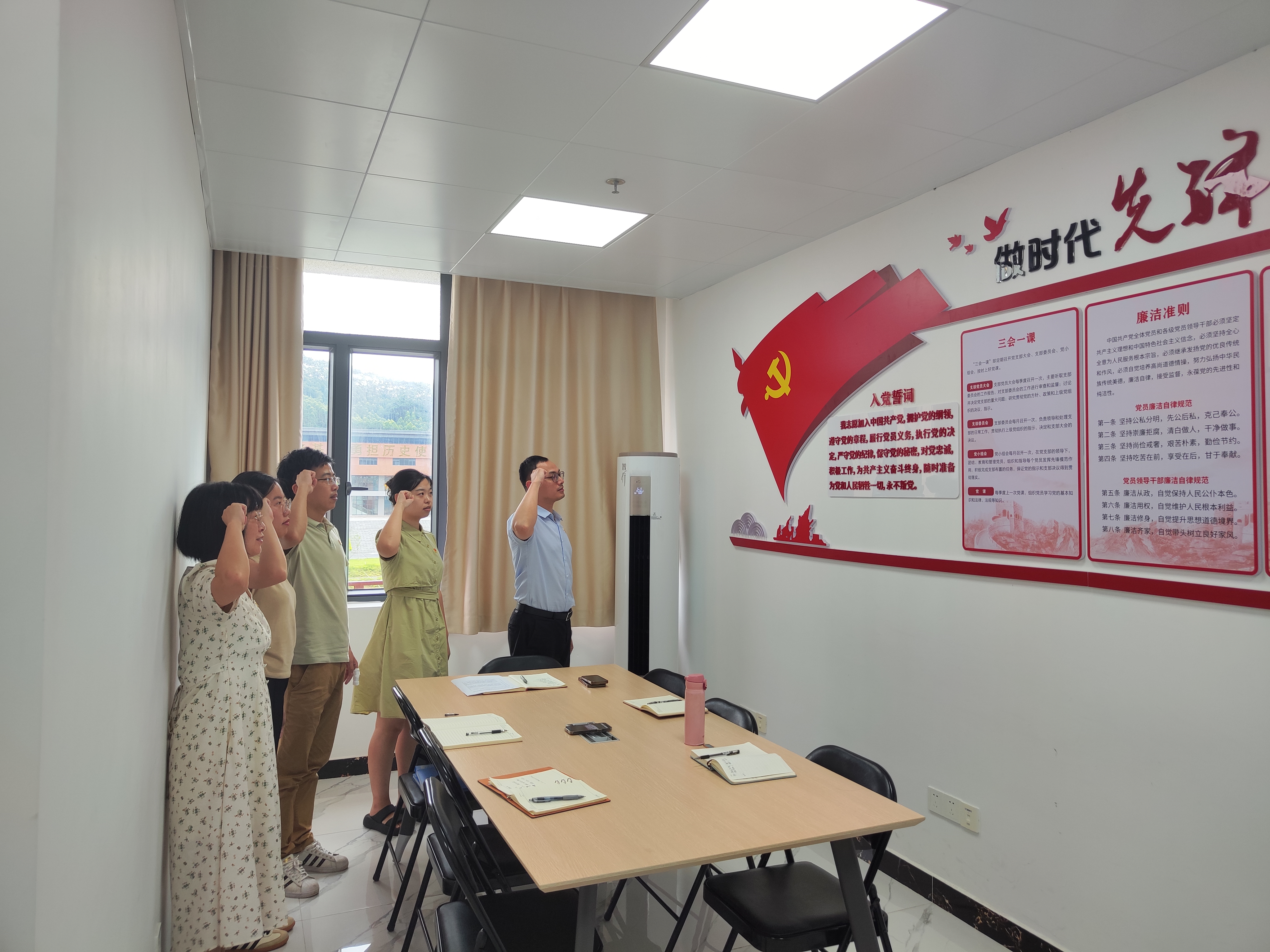 “我志愿加入中国共产党,拥护党的纲领,遵守党的章程……为共产主义奋斗终身,随时准备为党和人民牺牲一切,永不叛党。”全体党员高举右手,重温入党誓词,庄严宣誓,增强了党员奋斗意识和为党和人民的事业奋斗终身的信念。