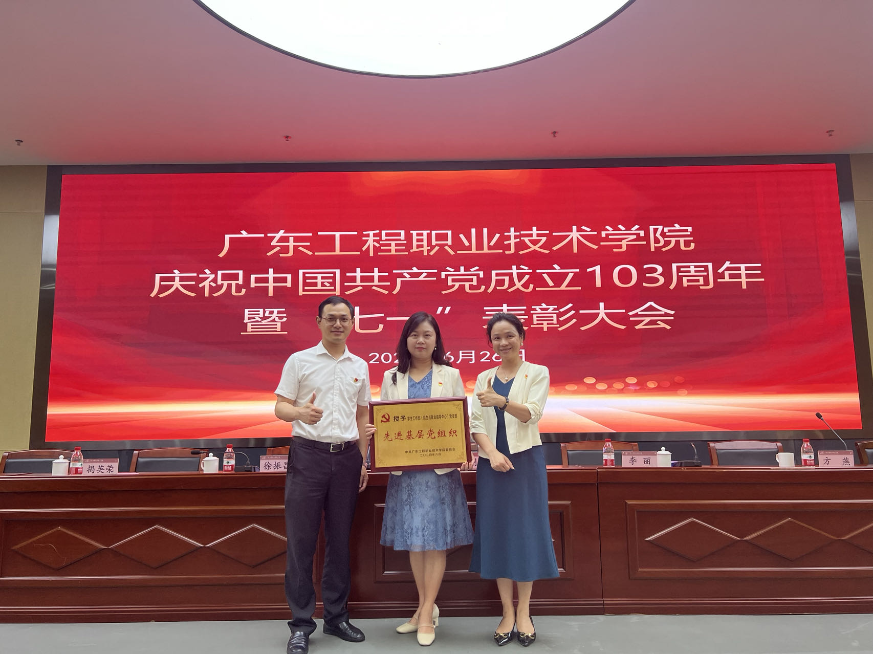 7月1日下午,学生工作部党支部全体党员在广州校区办公楼310和省职教城(清远)校区办公楼503连线开展主题为“践行初心 牢记使命”——庆祝中国共产党成立103周年主题党日活动。