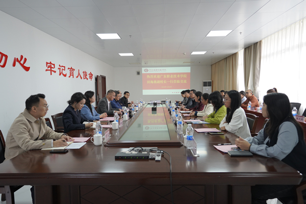 副校长张小广和广东职业技术学院副校长田海燕分别介绍本校的学生工作情况和亮点和特色,对新时代如何提高职院校学生管理工作的精细化和智能化进行深入的探讨和交流。学生工作部(招生与就业指导中心)黄馥丽部长和校团委刘山发书记分别组织部门成员在会议室开展对口工作交流。两校深入交流了学生日常管理、资助育人、学工队伍建设、“一站式”学生社区建设、心理健康教育、团委社团管理、第二课堂成绩单等多个领域进行深入交流和探讨,为共育时代新人,培养高素质职业技能人才努力奋斗。