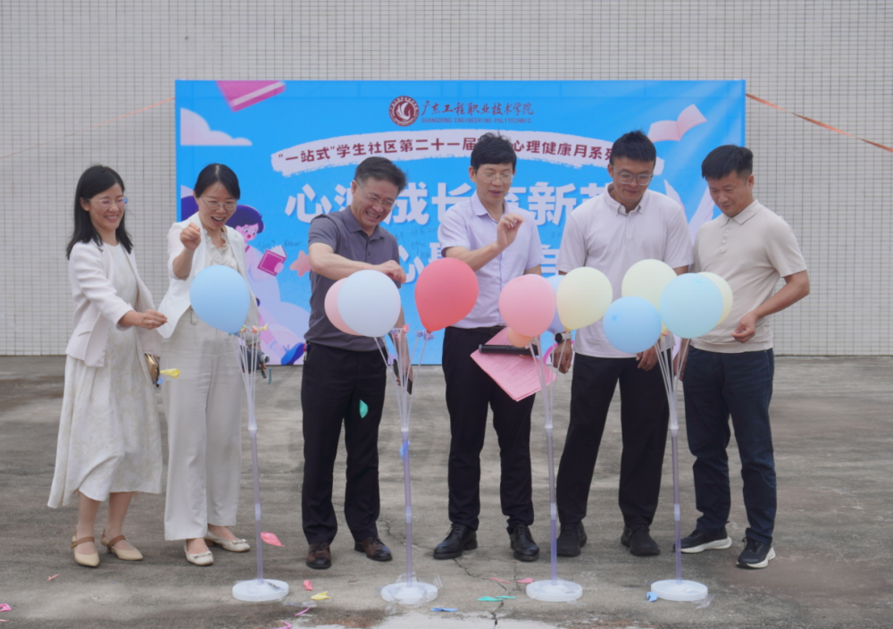 2025年5月25日,以“心润成长育新苗,凝心聚力启新篇”为主题的第二十一届“5・25”心理健康月游园活动在清远和广州两校区同期举行。学生工作部部长吴华长、学生工作部副部长李家标、建筑工程学院党委副书记石来斌、汽车工程学院党委副书记肖贵灯、文化旅游学院党委副书记罗汉红、体育健康学院党委副书记卢沛刁、心理健康教育与发展中心全体成员、二级学院心理辅导站负责老师出席了本次开幕式。