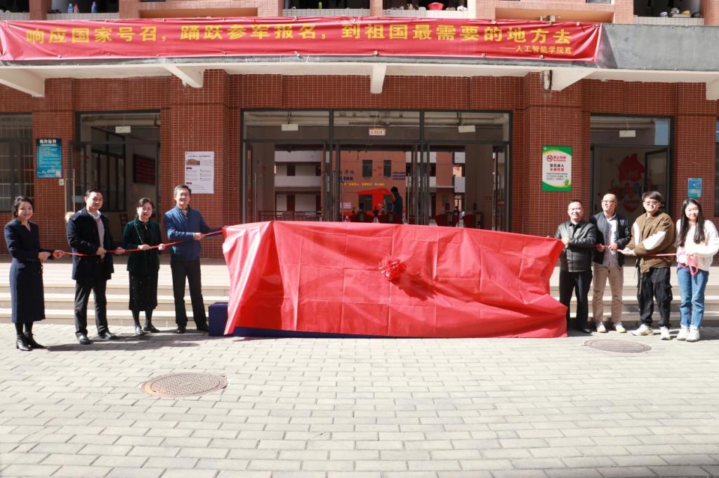 张小广副校长、黄馥丽和朱巍峰共同为人工智能学院“一站式”学生社区建设揭幕。