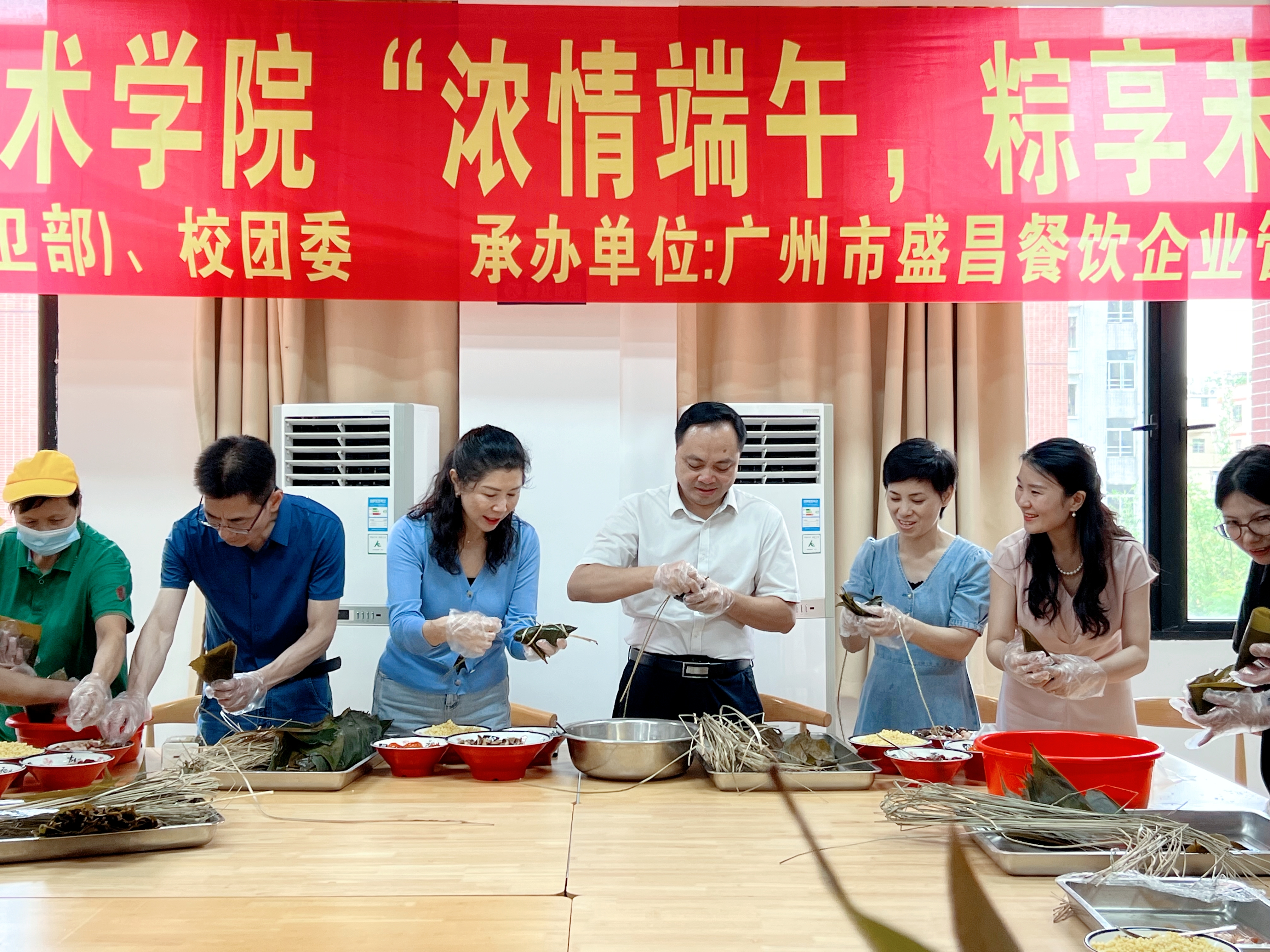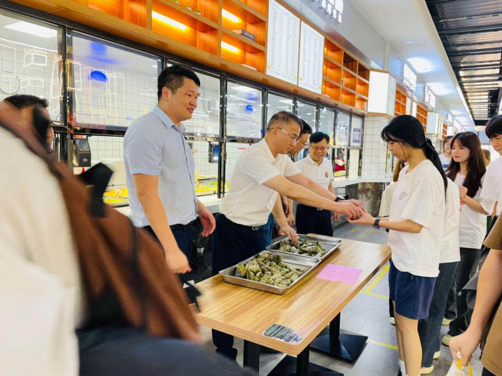 为弘扬传统文化、践行传统美德、让同学们感受端午节深厚的文化内涵,端午节当天,学校两校区同步开展“浓情端午,粽享未来”端午主题活动。学校党委书记叶忠明,党委副书记、校长李丽,党委委员、副校长揭英荣,两校区值班干部和留校学生一同参与活动,共度端午佳节。