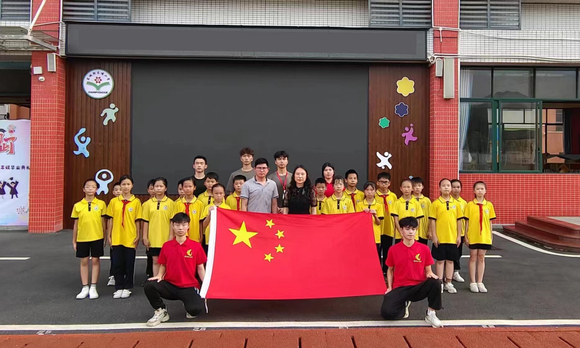6月13日,学生工作部施健老师带领国旗护卫队7名学生骨干前往清远市长埔小学开展爱国主义教育共建活动。爱国主义教育宣讲团成员为长埔小学国旗班宣讲《中华人民共和国国旗法》和井冈山精神,并对长埔小学国旗班开展队列动作、升旗等的针对性训练指导。