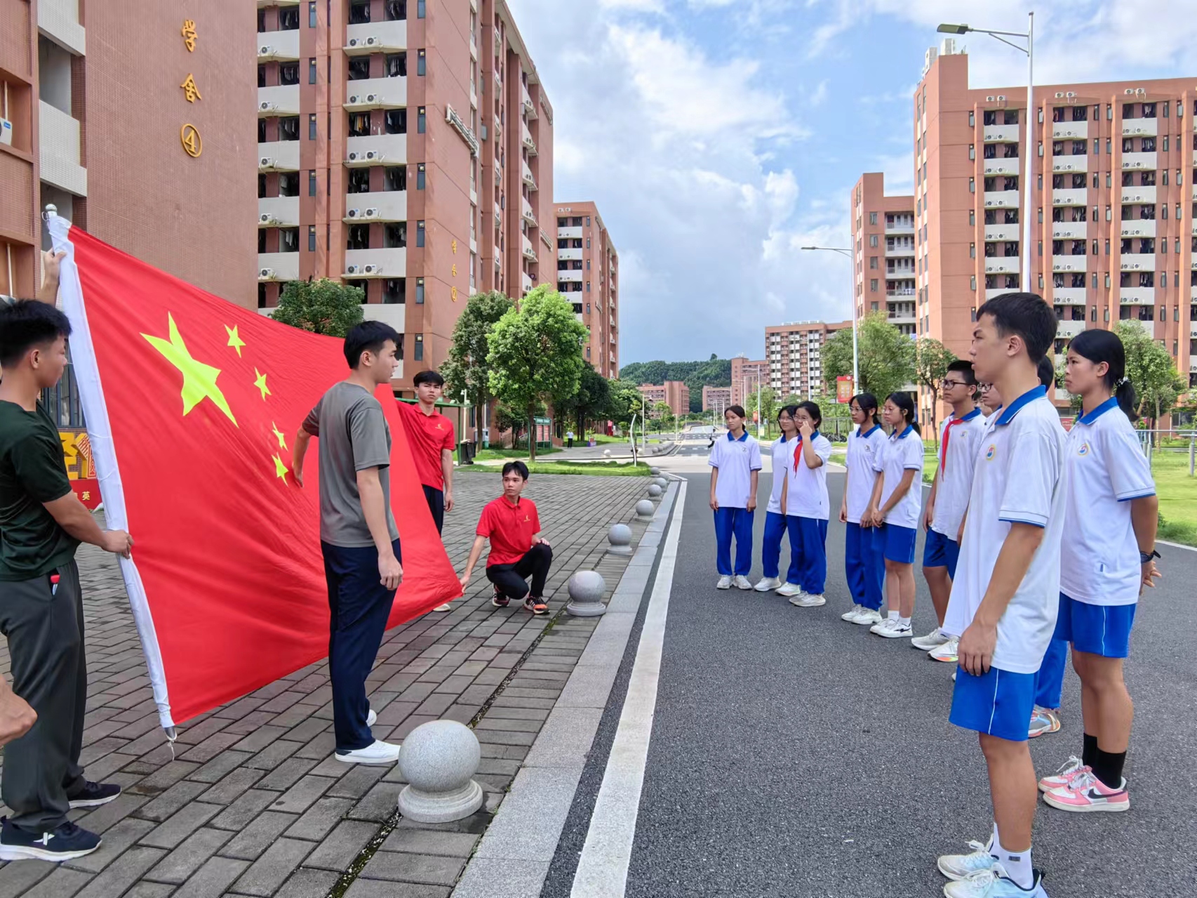 6月21日,我校与到访的松岗中学13名师生在清远校区第一操场开展爱国主义教育共建活动,爱国主义教育宣讲团成员给松岗中学国旗班同学宣讲《中华人民共和国国旗法》,并对松岗中学国旗班开展一对一的训练指导,随后双方围绕训练装备、队伍训练计划、动作要领等开展深入交流。