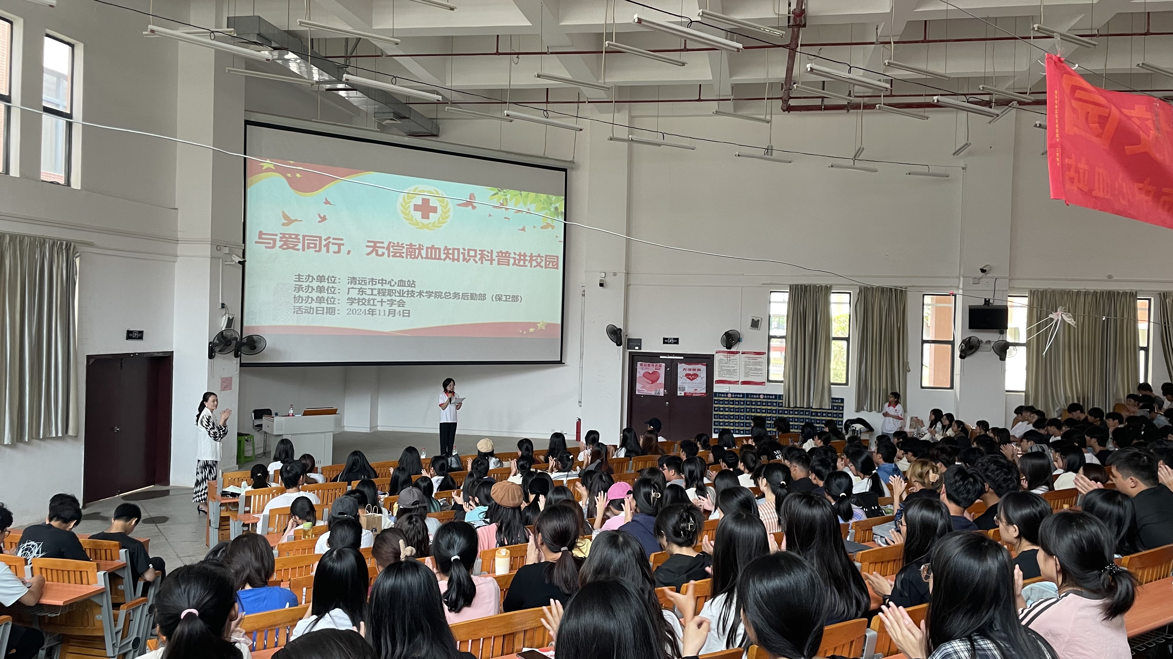 11月4日,学校特别邀请了清远市中心血站献血管理科主任、内科主治医师梁小宇莅临校园,开展了一场生动而详实的献血科普知识专题讲座。通过专家的讲解,学生们对无偿献血的重要性、安全性以及献血前后的注意事项有了更为深入的了解,无偿献血的认知度得到了显著提升。为了更积极地宣传和推广无偿献血理念,鼓励更多人积极参与到这份社会公益事业中,当天设置了献血宣传摊位,同时通过微信公众号、海报等途径和方式进行广泛宣传。