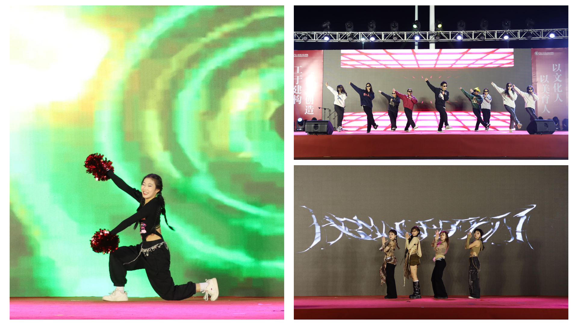 为进一步丰富校园文化生活,加强校园精神文明建设,12月11日晚,广东工程职业技术学院第二十六届校园文体艺术季之校园舞蹈大赛决赛在广州校区运动场隆重举行,本次大赛由校团委主办,商务学院承办,学校社团工作部和体育舞蹈协会协办,以“舞蹈青春 走向未来”为主题,旨在通过舞蹈大赛培养学生对文化艺术的兴趣,加深对中华优秀传统文化的了解,激发学生爱国热情,展现新时代青年在新征程中的理想与担当;出席本次大赛的评委有学生工作部张文婷老师、公共课教学部陈梅老师、公共服务学院李博文老师,校团委刘淑洋老师和二级学院师生代表们一同观看了此次比赛。
