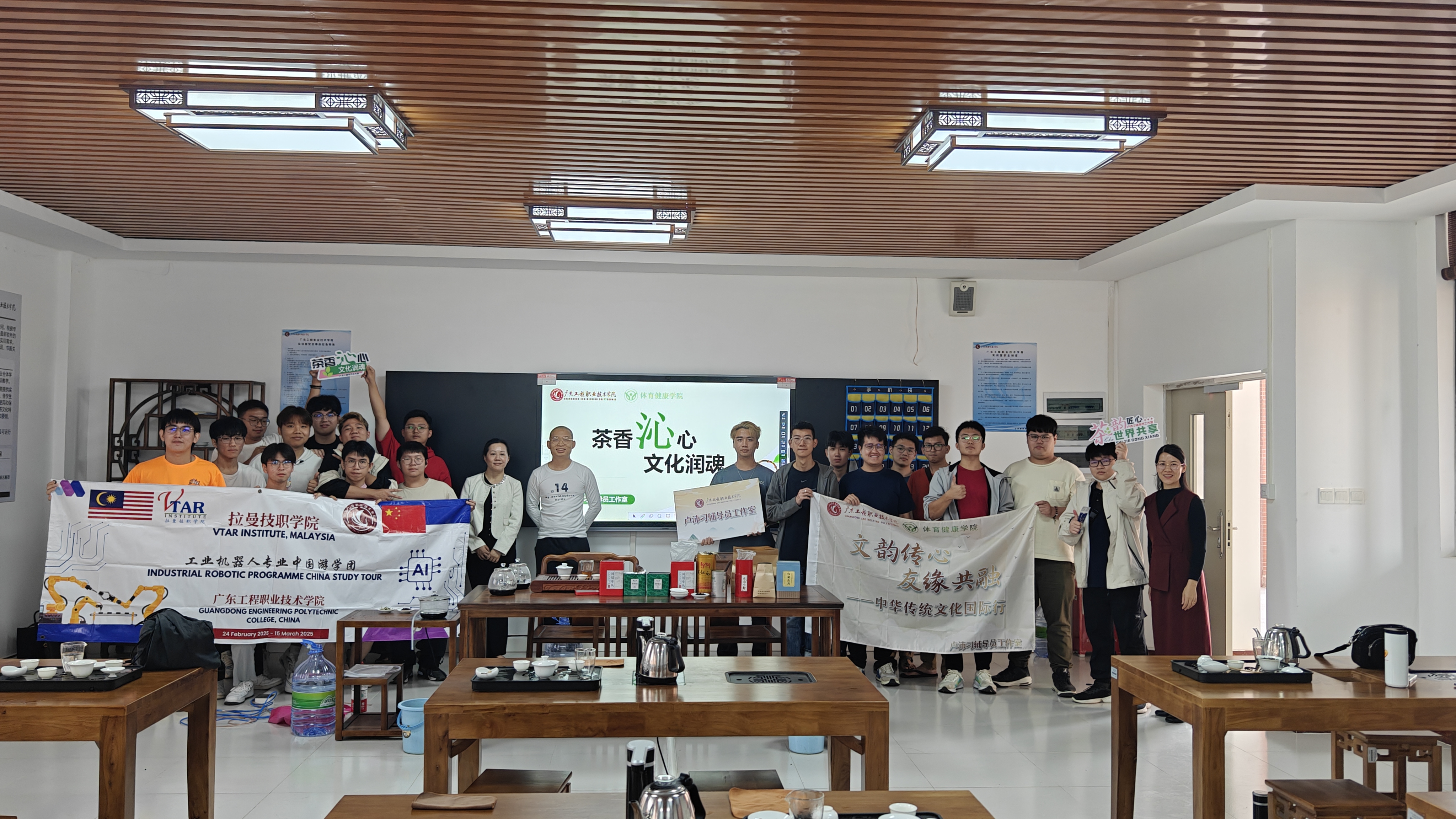 为弘扬中华传统文化,促进中马文化交流。2025年3月10日下午,体育健康学院在教学楼4-403举行“茶香沁心,文化润魂”中马茶艺文化交流活动,马来西亚拉曼技职学院和体育健康学院共30多名师生参与了活动。本次活动由卢沛刁辅导员工作室承办,戴璐老师主讲。
