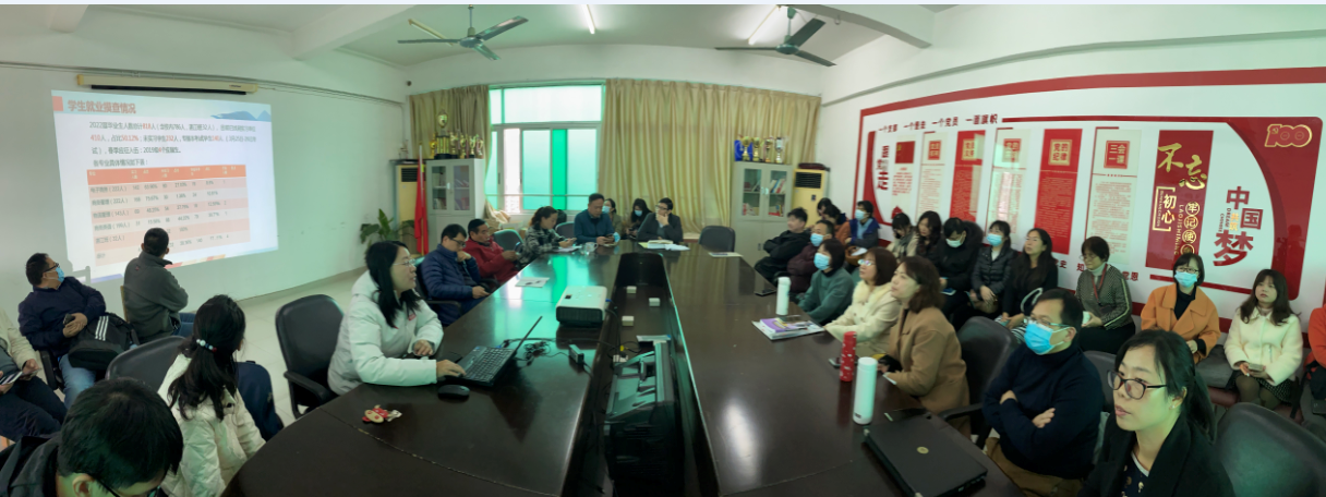 会上,毕业班辅导员邓晶介绍了学院已开展的2022届毕业生就业指导培训专题讲座、企业宣讲招聘会、征兵宣传活动等情况,同时通报了2022届毕业生的现阶段就业摸查基本情况,其中包括毕业生总人数、在岗实习人数、未在岗实习人数、准备专插本人数、入伍人数等基本信息。