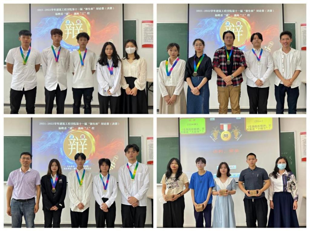 经过几轮激烈论战,最终以 2021 级建筑设计 C 班为代表的辩论队伍荣获辩论赛决赛一等奖,2021 级工程造价C班的彭绿叶同学获得辩论赛“最佳辩手”称号。随后晋保山副 书记、何晓丰老师以及各辅导员分别为获得一、二、三等奖的各队选手以及优秀辩手、最佳辩手颁奖,并与获奖人员合影留念。