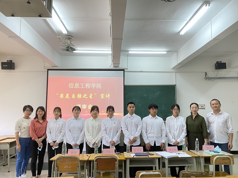 为激励我院学生自立自强,奋发成才,进一步挖掘、宣传大学生积极进取、拼搏奋进的感人事迹,在学生中树立一批勤奋学习、不畏困难、勇于进取的先进典型,引导更多的学生向身边榜样学习,以实际行动迎接党的二十大胜利召开。信息工程学院于5月18日中午12点在科技楼204开展信息工程学院2022年度“最美自强之星”评选活动。本次活动由黄细玲同学主持。出席本次评选活动的有桂爱民书记和全体辅导员,21级各班家庭经济困难学生代表、学院勤工服务站全体人员。