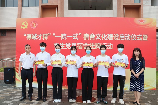 学校领导为“德诚才精”“一院一式”宿舍文化建设揭牌启动