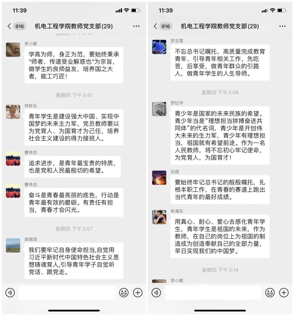 机电工程学院教师党支部深入学习习近平总书记在庆祝中国共产主义青年团