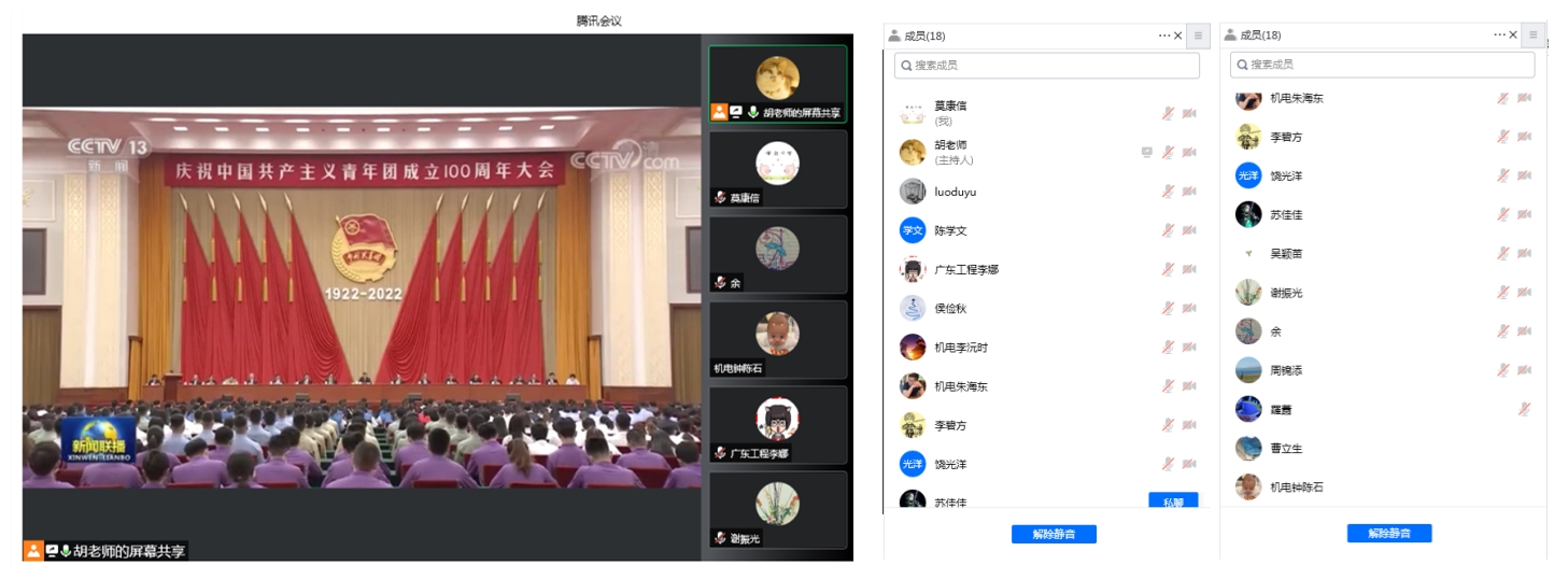 为进一步深入学习领会习近平总书记重要讲话精神,5月12日下午,机电工程学院教师党支部通过线上、线下相结合的方式,在清远校区Q2-202会议室以及腾讯会议开展组织生活会,深入学习习近平总书记在庆祝中国共产主义青年团成立100周年大会上的重要讲话精神。机电工程学院教师党支部全体党员参加了本次会议。会议由教师党支部书记莫康信主持。