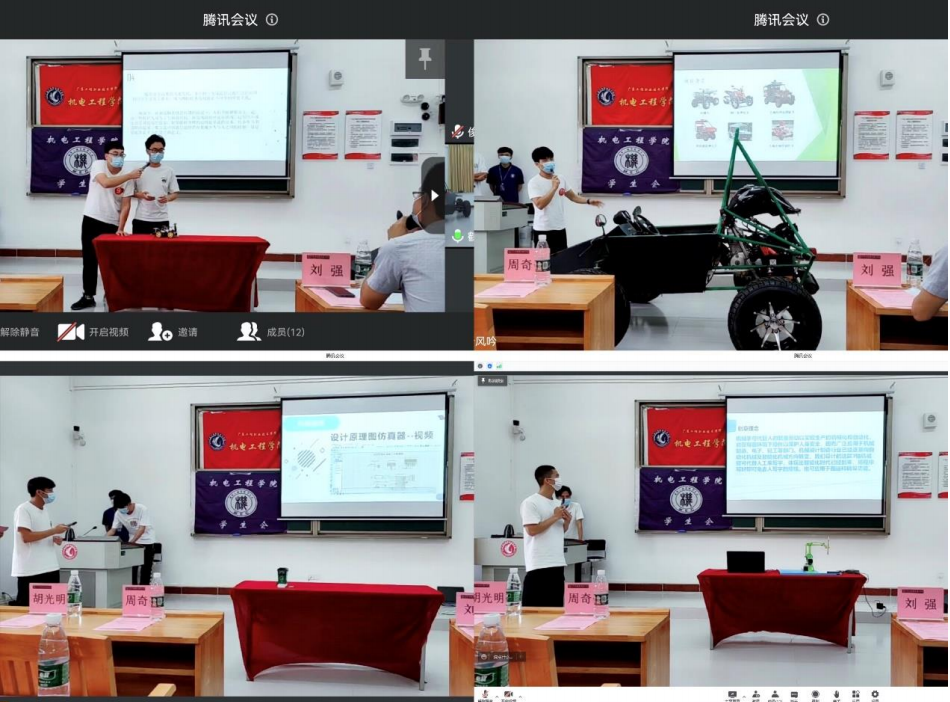 因疫情防控,本次决赛以线下展示,线上直播两者相结合的形式开展。在比赛中,参赛团队以精美的 PPT,实物操作讲解与演示向大家全面展示了作品团队风采。评委们针对作品存在的问题,待解决的难点提出了很好的建议。参赛选手们精彩的汇报和答辩也引来大家的阵阵掌声。同时通过现场直播的方式,让更多的同学参与了进来,共同学习共同进步!