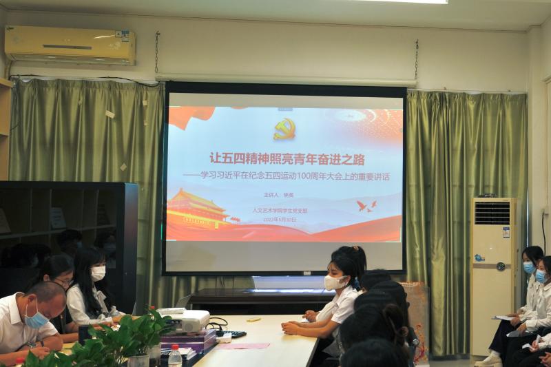 为认真学习贯彻习近平总书记在庆祝中国共产主义青年团成立100周年大会上重要讲话精神,5月30日,艺术设计学院学生党支部举办了“让五四精神照亮青年奋进之路”主题党日活动。