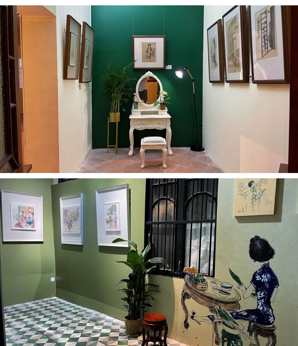 陆梅老师的“《享自在 》春风秋月美沙面”艺术作品展借旗袍为缩影,从时代女性的视角,结合沙面景观与场景,穿越时代寻历史肌理,找寻自在而自洽的生活态度。通过旗袍女子的生活场景、一颦一笑,表达当下人们对自在生活的理解和对美好生活的感悟。