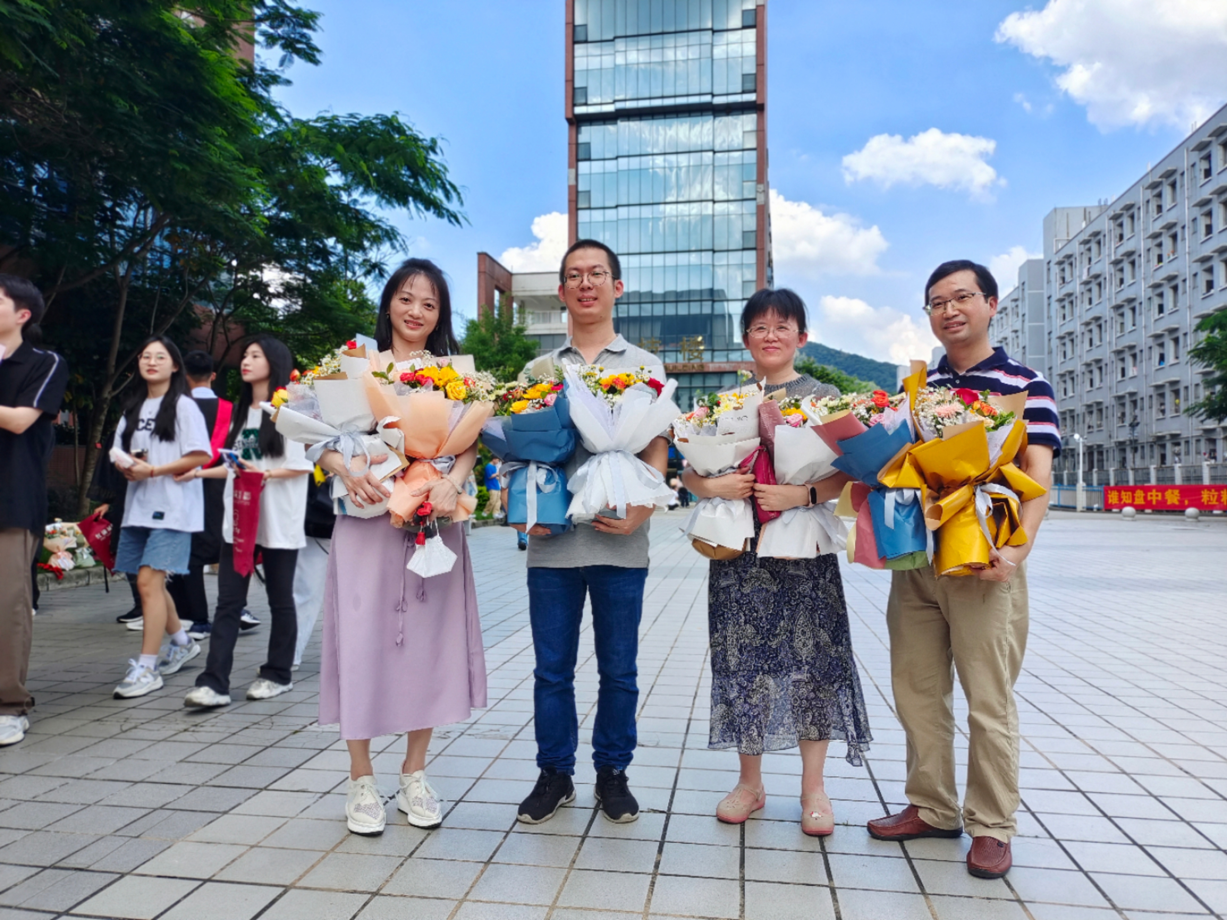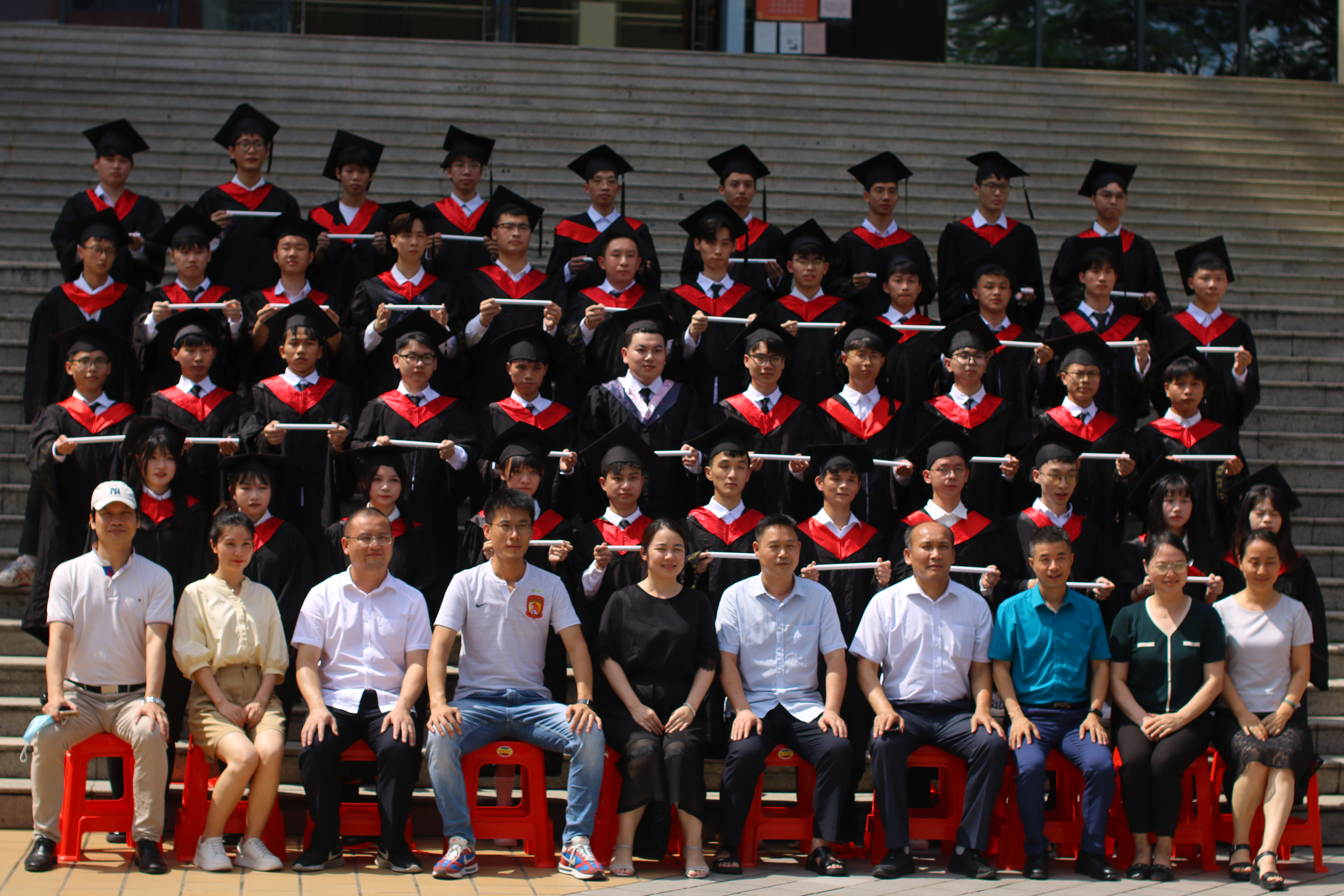 23日下午2:30,信息工程学院毕业生毕业留影工作正式开始,按照班级排序,各班毕业生与学院领导、辅导员、班主任和专任教师一起拍摄了毕业照。拍摄过程中,每一位毕业生和老师脸上都洋溢着幸福的笑容。老师和同学们之间互赠祝福,手捧鲜花,一起定格美好瞬间。