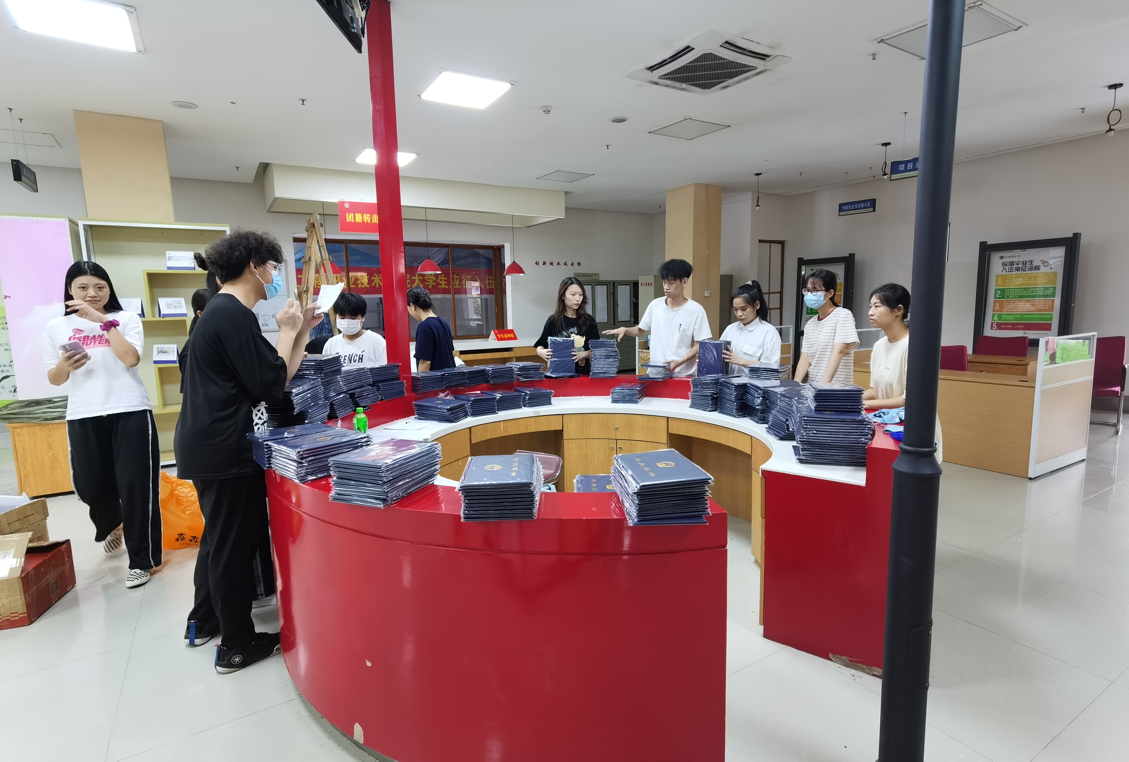 为了做好毕业生离校工作,做好人才培养工作的最后一站,2022年6月23日,信息工程学院在图书馆一楼就业指导中心圆满完成了毕业生离校工作,助力每一位学生安全离校。